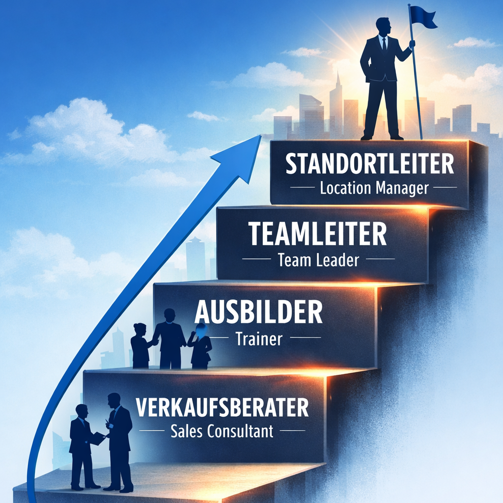 Bei uns beginnt jede Karriere mit einer starken Basis und entwickelt sich Schritt für Schritt nach oben. Unsere Karrierestruktur bietet transparente Aufstiegsmöglichkeiten, individuelle Förderung und echte Verantwortung auf jedem Level.